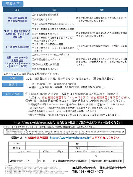 内部統制運用基礎講座 2026年4月15日(水) 10:00~17:00